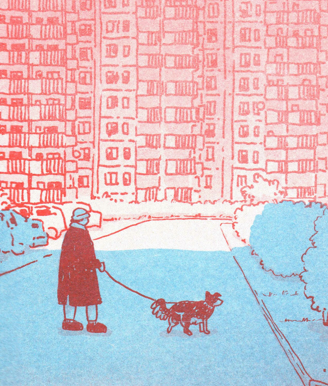 Opole, blokowisko, modernizm, bloki, osiedle, pies, spacer, świt, poranek, wielka płyta